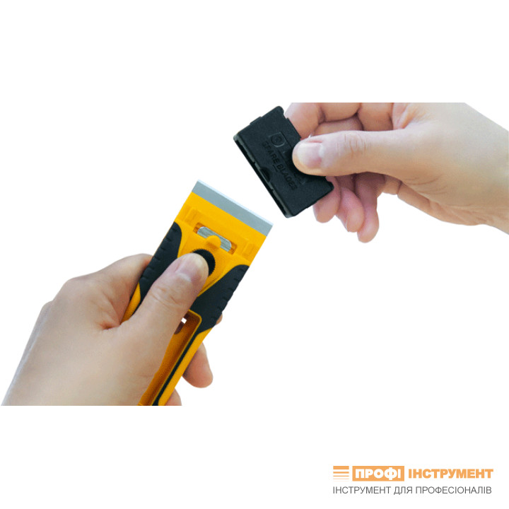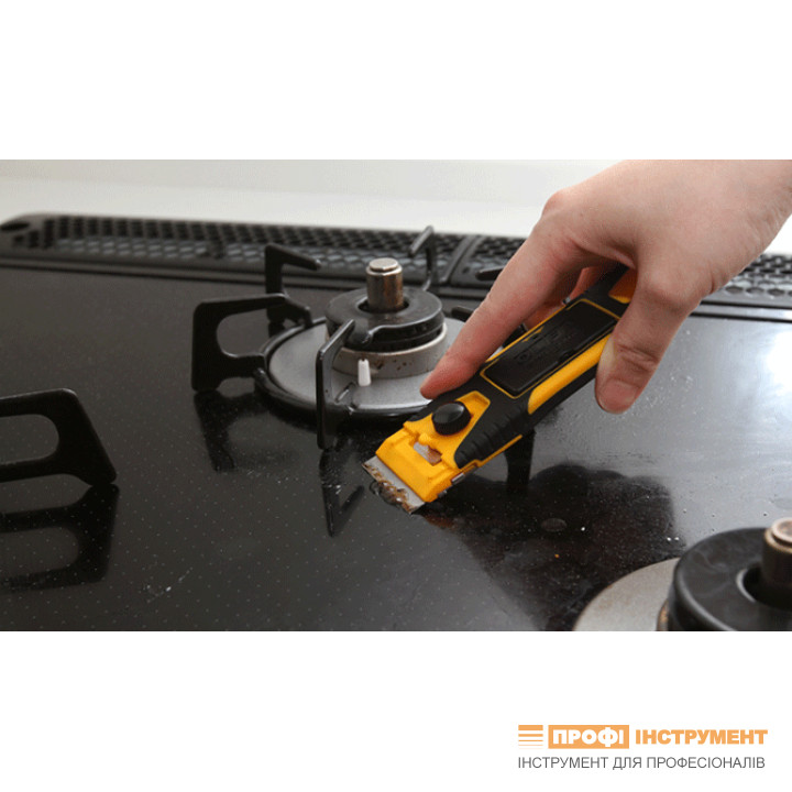 Ручка скребка так же широка, как и сменное лезвие из нержавеющей стали. В результате это позволяет очищать узкие места, углы и криволинейные поверхности. Он также может быть очень полезен в домашних условиях, например, для чистки керамических плит, каминного стекла и т.п.
