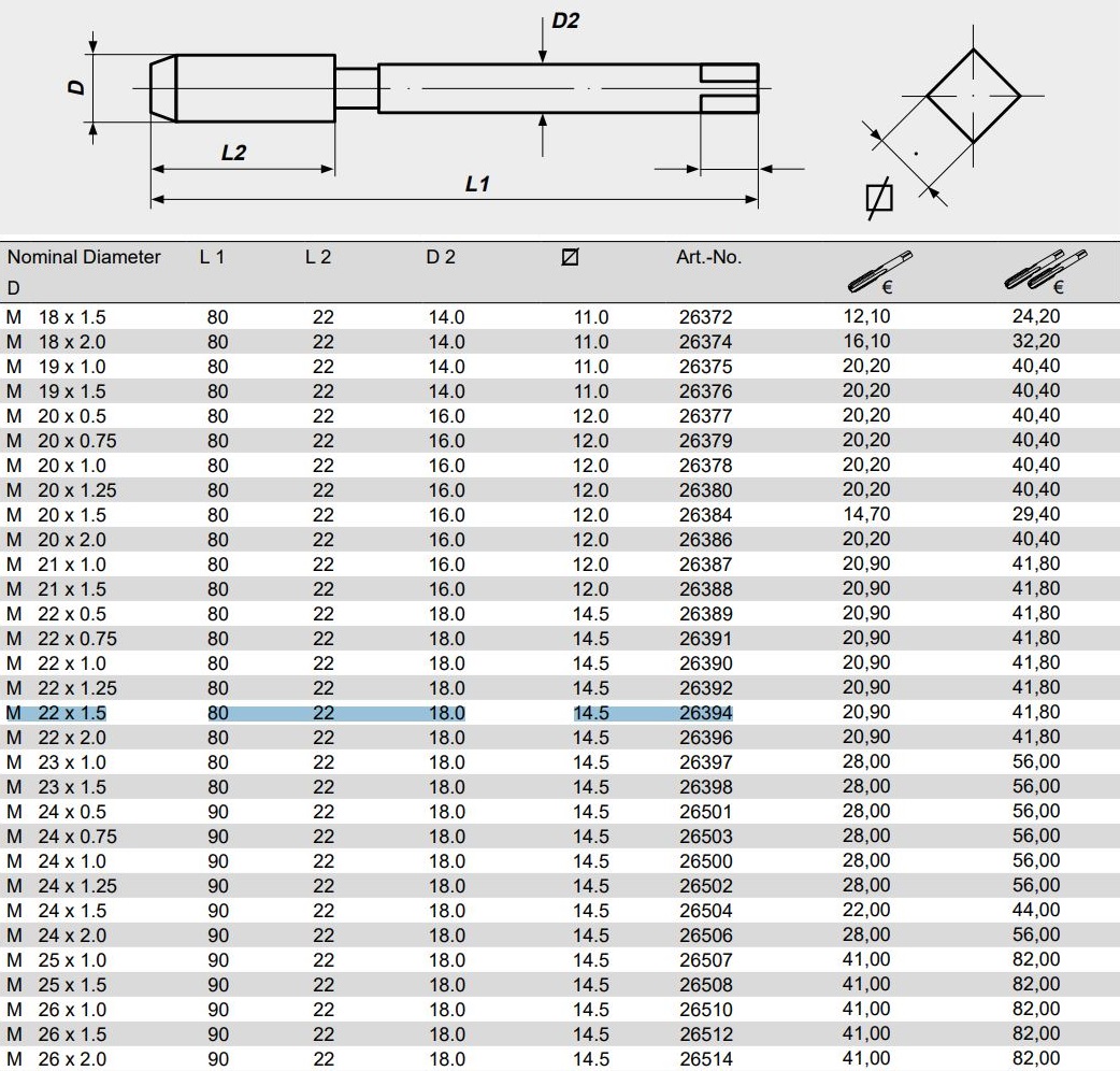 Метчик VOLKEL ручной Мf 22х1,5 (26394_)